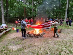 For more information on flag etiquette and retiring a flag see this post from Aaron On Scouting.