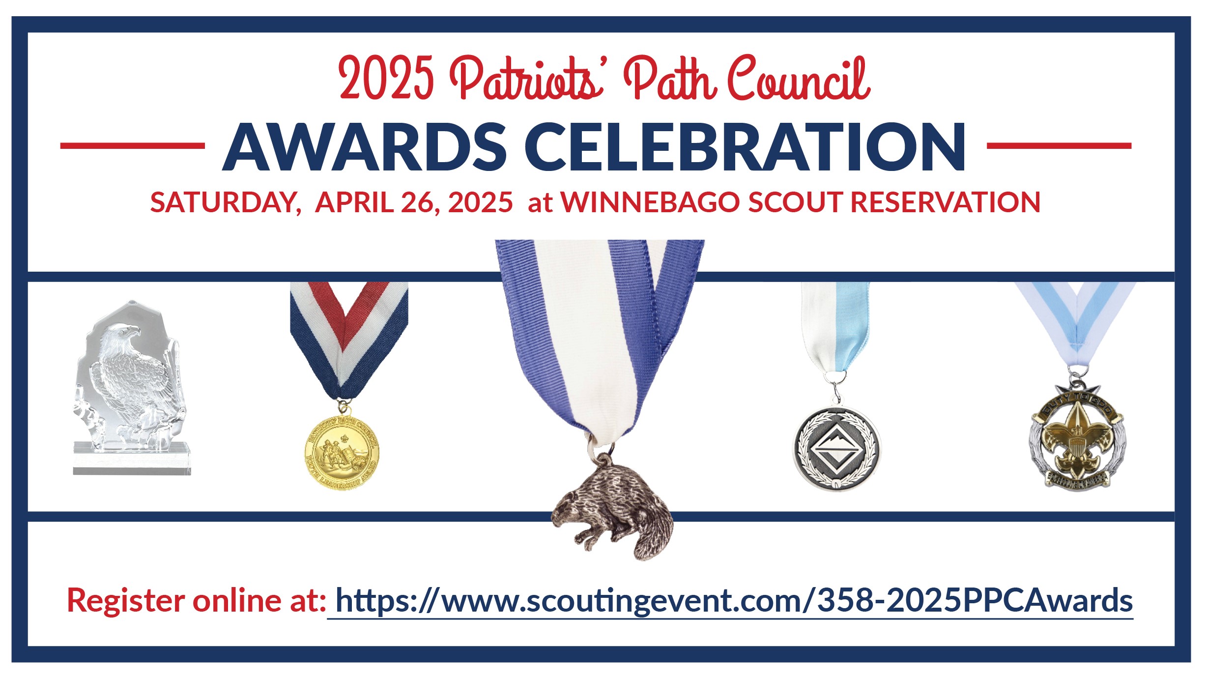 Register for the Patriots’ Path Council 22nd Annual Eagle Scout Recognition & Reunion Dinner! Celebrate the 2025 Eagle Scout Class, our 2026 Hall of Fame Inductees, and our 2026 National Outstanding Eagle Scout on Tuesday, May 19th at Olde Mill